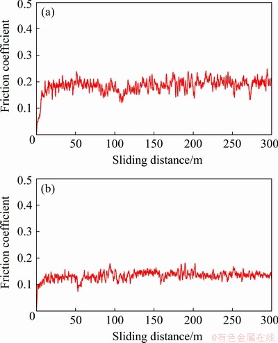 In addition, the oscillation of friction coefficient for the NAB substrate is larger than that of DLC coating. The large oscillation of friction coefficient may be attributed to the periodical accumulation and omission of wear debris on the worn route, as stated by MAHMOUD et al [40].