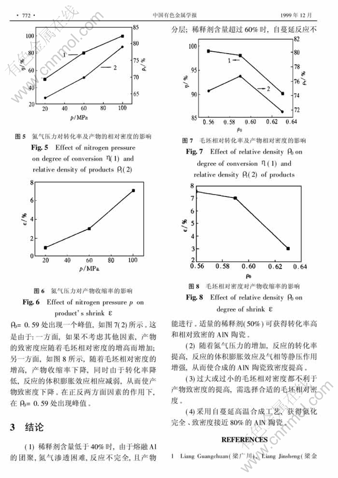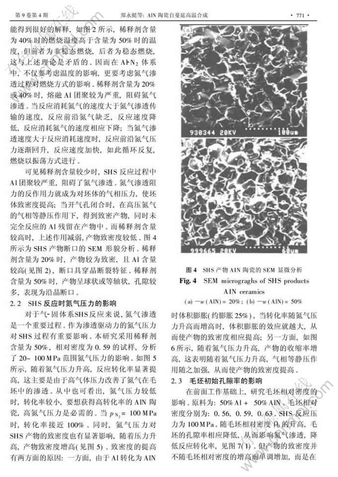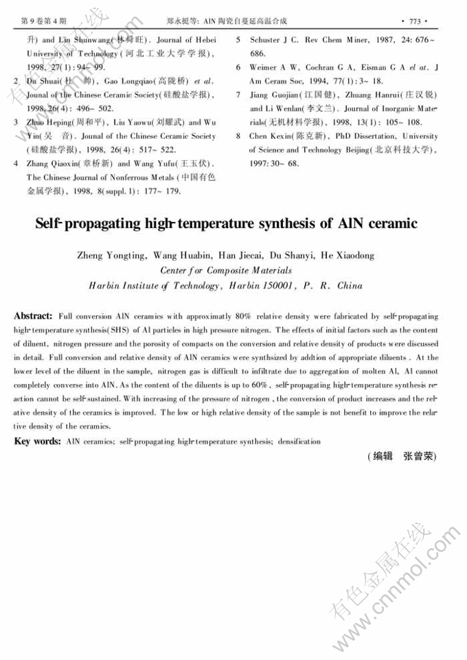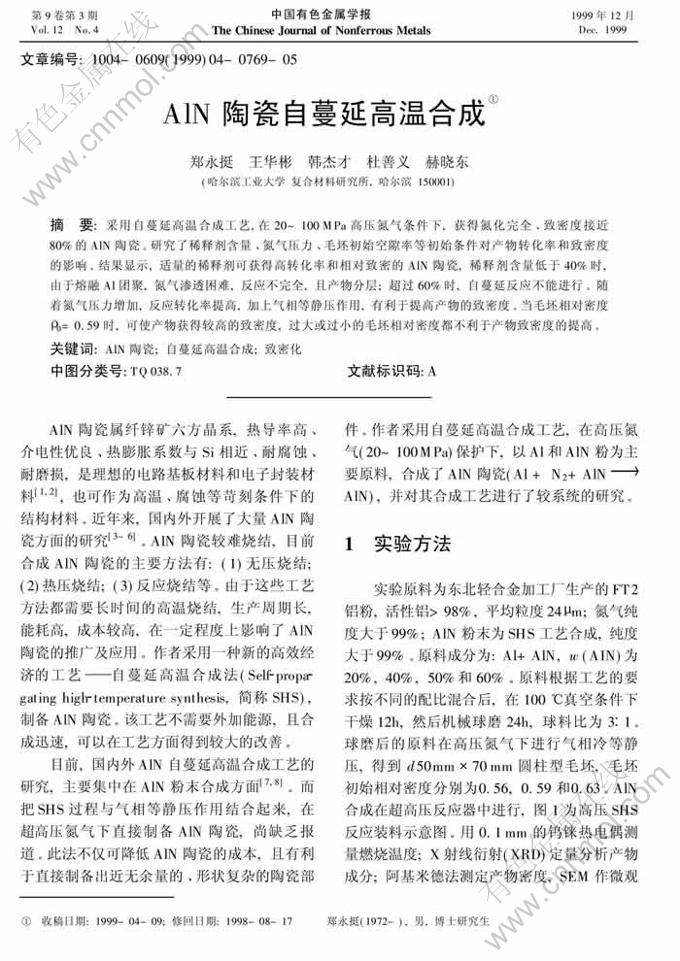 Key words:AlN ceramics; self-propagating high-temperature synthesis; densification