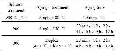分级热处理工艺在很多金属材料(钢铁、铝合金和铜合金等)中已经得到大量的研究和广泛的应用。例如,在实际生产中对7×××系铝合金采用双级时效热处理制度,在保持强度的同时提高了合金的断裂韧性及抗应力腐蚀性能[11]。分级热处理在钛合金中也得到一定的研究,如通过对TC18钛合金进行双重退火处理可以改善其组织与性能[12];双级时效可以提高Ti-15V-3Cr-3Al-3Sn合金的硬度和强度[13]。而对于医用钛合金来说,大多数采用单级时效处理制度,关于双级时效热处理工艺的报道十分有限,双级时效过程中合金的相转变规律、微观结构演变以及力学性能的变化等问题有待更加深入研究。