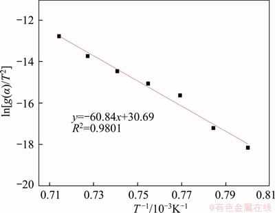 ln[g(α)/T2]=ln[RA/(βE)(1-2RT/E)]-E/(RT) (5)
