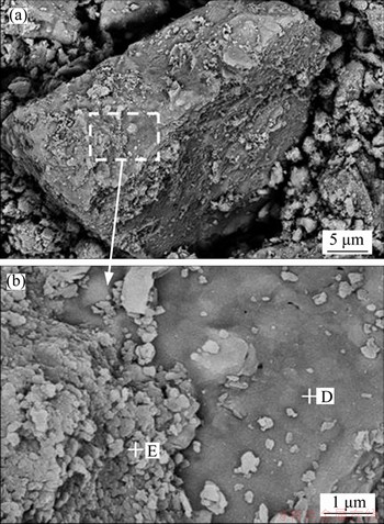 As seen in Figure 7 and Table 5, some blocky particles (D) corresponding to CS form during the heating process, and the CaO to SiO2 molar ratio is below 1 because of the low diffusion rate and short reaction time. Meanwhile, a large quantity of CaO (E) exists on the surface of CS.