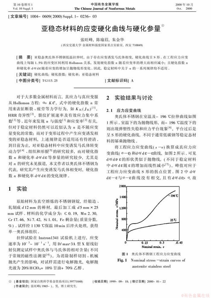 关键词:硬化曲线; 硬化指数; 硬化率; 亚稳态材料