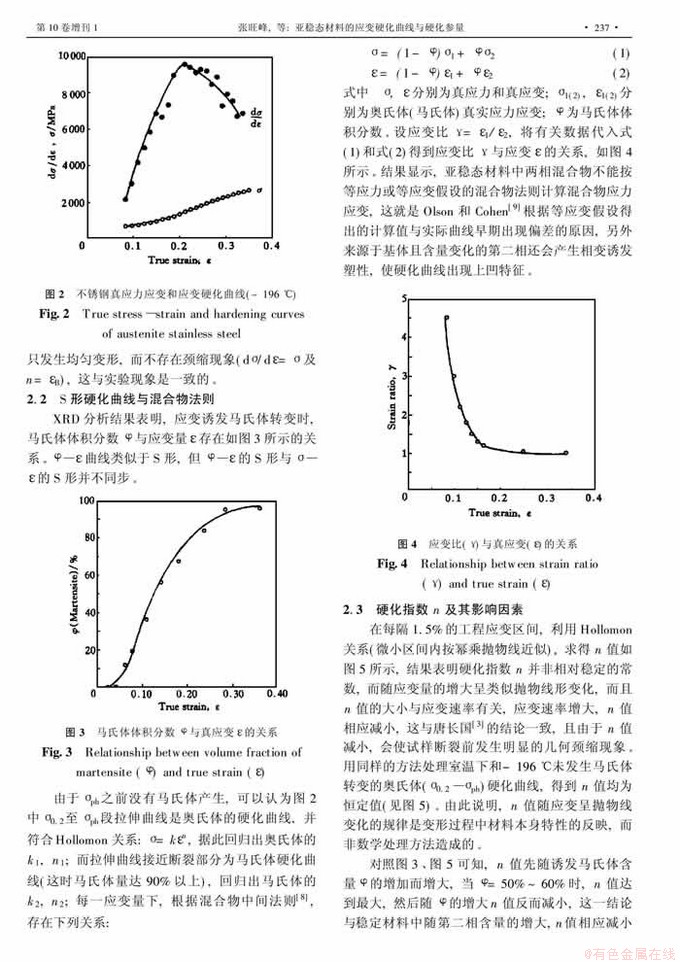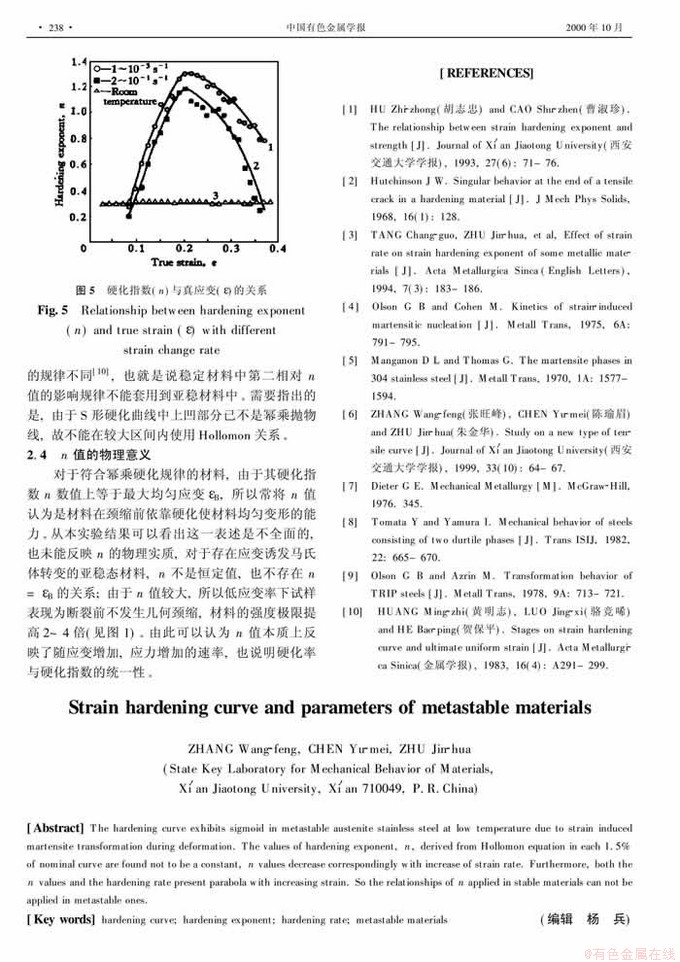 Key words:hardening curve; hardening exponent; hardening rate; metastable materials