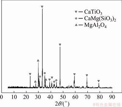 The TBBF slag used in this research was received from Panzhihua Iron and Steel Co., Ltd., (Sichuan, China). The chemical composition analyzed using multiphase X-ray fluorescence (XRF) is shown in Table 1. The contents of TiO2, Al2O3 and MgO reach 27.2%, 11.4% and 7.15%, respectively, indicating high recycling value. The mineral composition was revealed by X-ray powder diffraction (XRD) (Fig. 2), showing that dominant minerals were perovskite (CaTiO3), diopside (CaMg(SiO3)2) and magnesium aluminium spinel (MgAl2O4). All the reagents used in the work were of analytical grade and purchased from Sinopharm Chemical Reagent Co., Ltd.