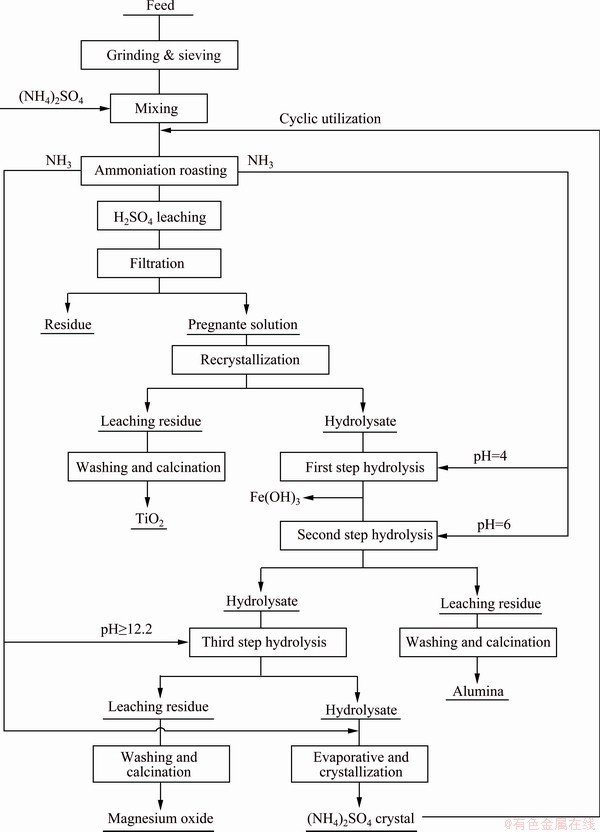 Fig. 3 Flow chart of titanium, aluminum and magnesium separation and extraction from Ti-bearing blast furnace slag