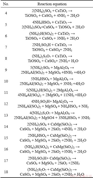Table 3 Reaction equations of ammonium sulfate and its intermediate products with perovskite, spinel and diopside