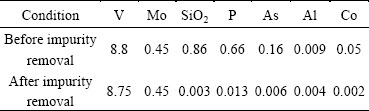 Table 4 Vanadium leach liquor composition before and after impurity removal ( g/L)