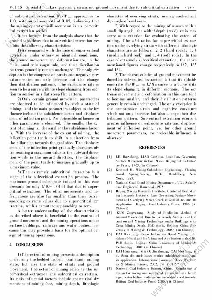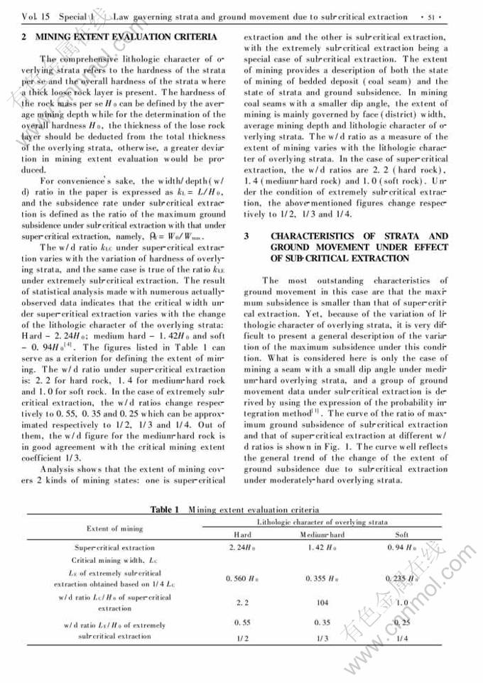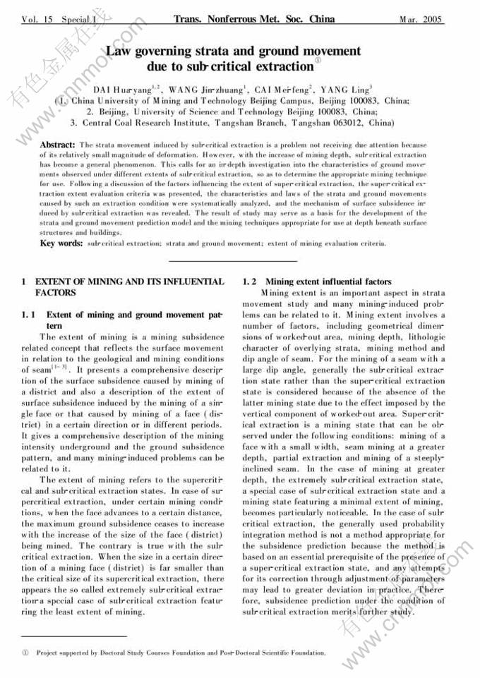 Key words:sub-critical extraction; strata and ground movement; extent of mining evaluation criteria.;