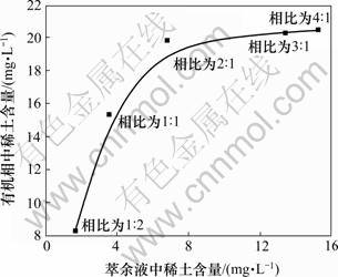 Fig.3 Effect of volume ratio of organic phase to water phase on extraction of rare earth