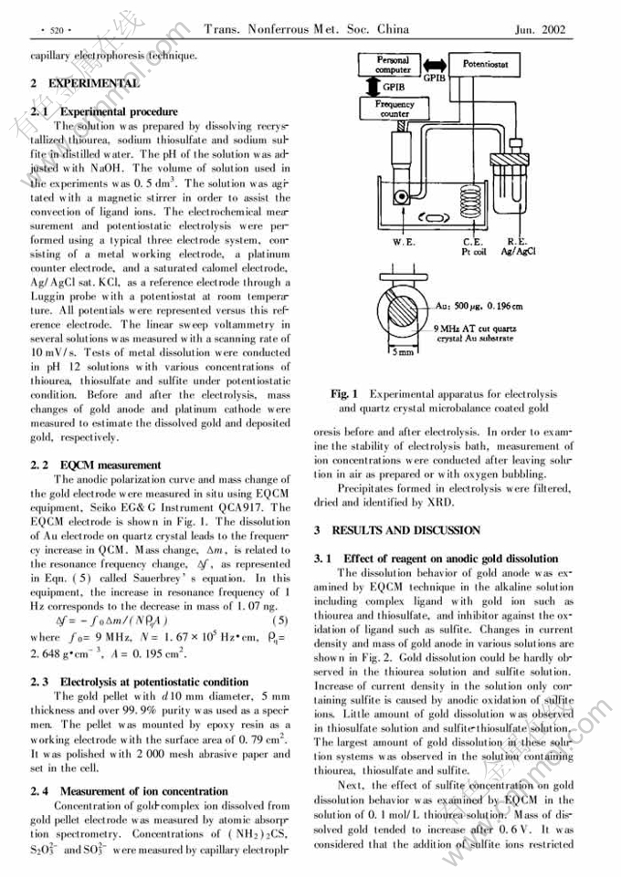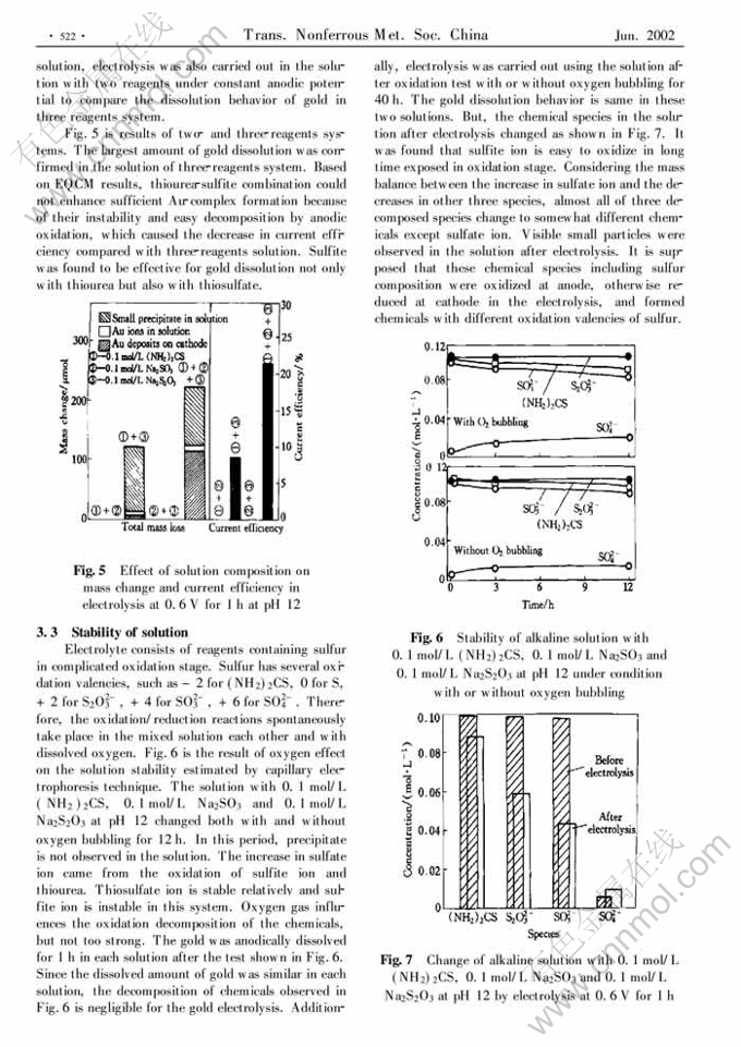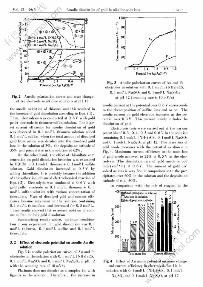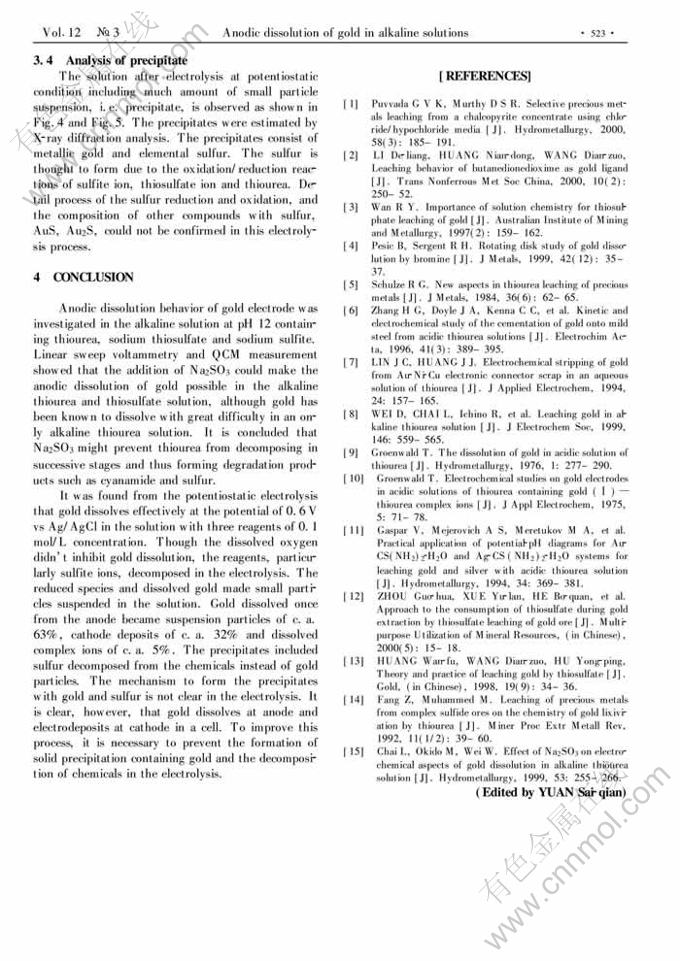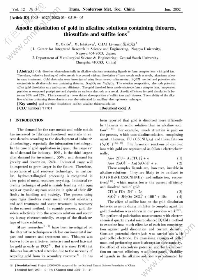 Key words:gold selective dissolution; sulfite; alkaline thiourea solution