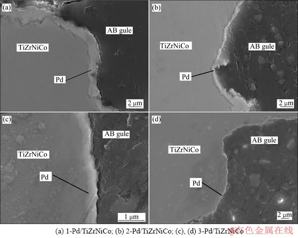 Fig. 3 Cross-section BSE images of Pd/TiZrNiCo