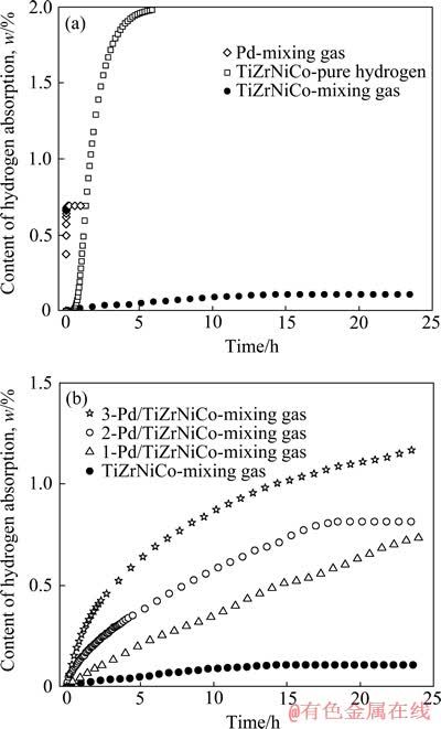 图9 Pd/TiZrNiCo在混合气体中的吸氢动力学曲线