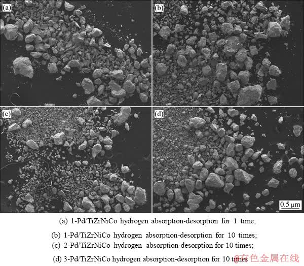 Fig. 6 Morphologies of Pd/TiZrNiCo alloy particles after hydrogen absorption-desorption(Ap-Dp)