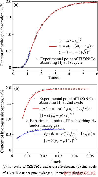 为进一步明确Pd/TiZrNiCo试样在混合气体中的吸氢及毒化机理,因而对其动力学曲线进行分析。