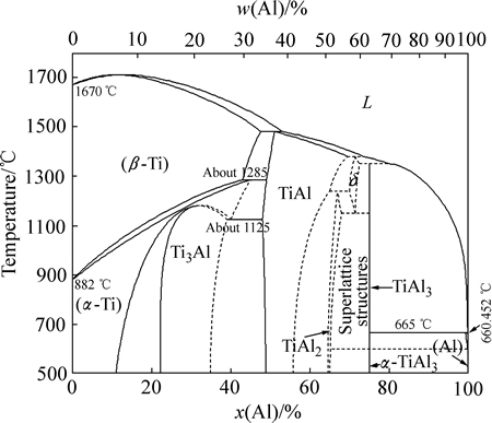 Fig. 1  Binary phase diagram of Ti-Al alloy