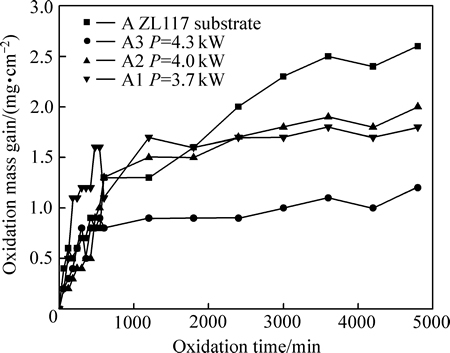 图8  激光熔覆涂层和ZL117基体的氧化动力学曲线