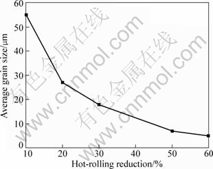 Fig.3 Relationship between average recrystallization grain size and hot-rolling reduction of HRA sheet