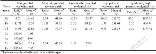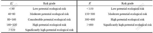Table 4 Risk grades indexes and grades of potential ecological risk of heavy metal pollution
