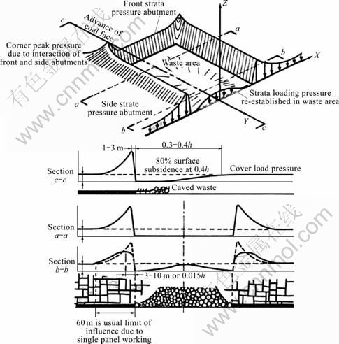 Fig. 1 General form of stress redistribution around longwall mining panel [3]