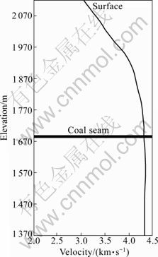 Fig. 4 One-dimensional interpretation of initial velocity model (Coal seam is shown by bold black line at approximately 1 700 m elevation)