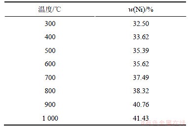 根据镍精矿化学分析方法镍量的测定YS/T 341.1—2006和有色冶金分析手册中的EDTA直接滴定法测定Ni(Ⅱ)浓度;采用日本理学公司的X线衍射仪(RIGAKU-TTRⅢ)表征样品的晶体结构,计算晶粒尺寸、微观应变等,测试条件为:工作电压40 kV,工作电流250 mA,Cu Kα,扫描速度为1 (°)/min,步长0.01;采用日本JSM-6360LV 型扫描电镜(SEM)观察样品形貌;采用Universal公司生产的SDTQ600V8.0 Build95型差热-热重分析仪,在空气气氛下,对样品的热特性进行分析,升温速度5 ℃/min。