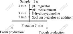 矿浆pH调整剂为盐酸和碳酸钠,均为分析纯。油酸钠为化学纯,8-羟基喹啉为分析纯。实验用水为一次蒸馏水。