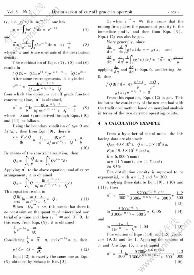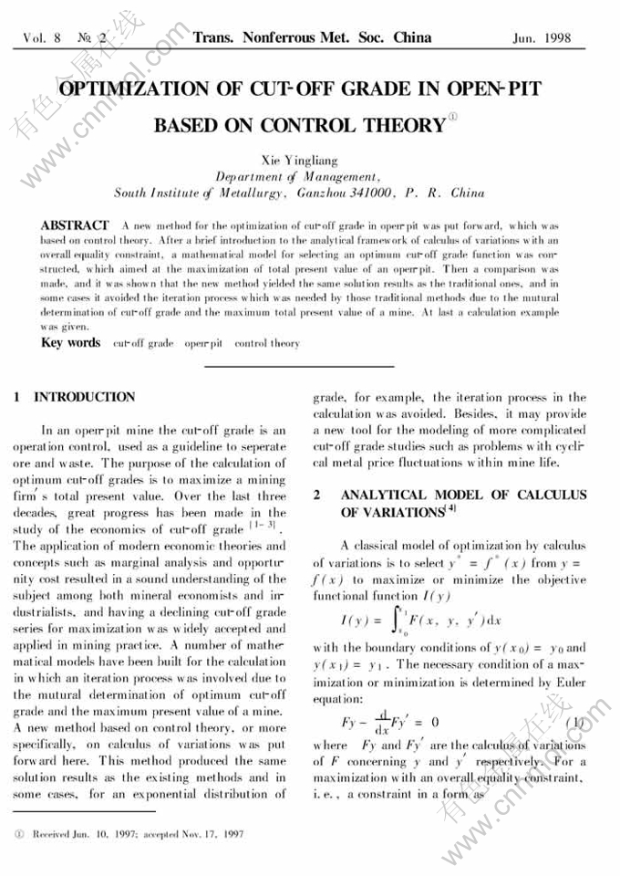 OPTIMIZATION OF CUT-OFF GRADE IN OPEN-PIT BASED ON CONTROL THEORY