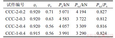 为约束系数;B和C为截面形状对约束效应的影响系数;φe为考虑偏心率影响的整体承载力折减系数,当偏心率<0.5时,φe=1/(1+2e0/h);φl为考虑长细比影响的整体承载力折减系数,根据长细比查表或计算得到φl,具体方法参考文献[19]。