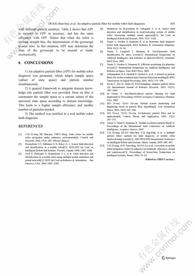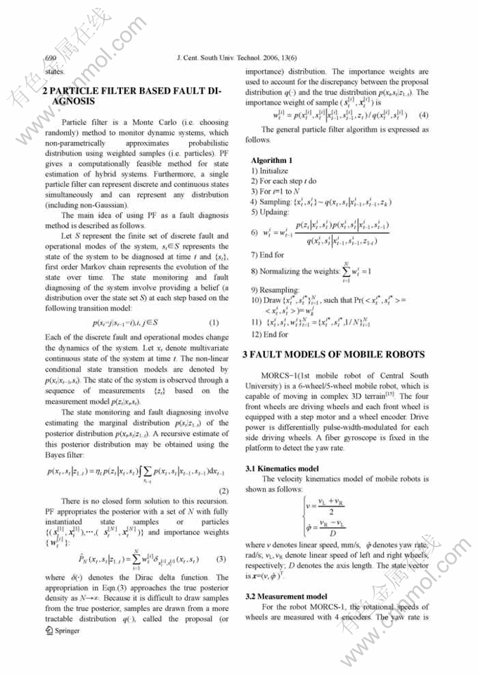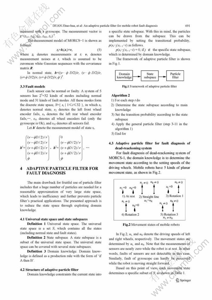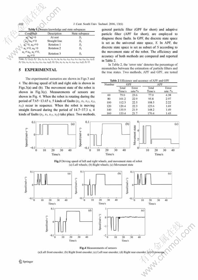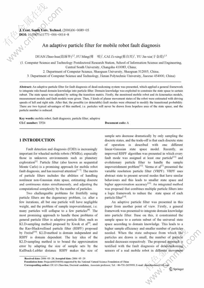 Key words:mobile robot;fault diagnosis;particle filter;adaptive
