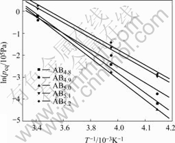 Fig.6 Van’t Hoff curves of ABx metal-hydride alloys