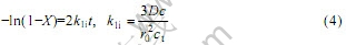 Table 2  Lineal regression analysis of function -ln(1-X) vs time (t)