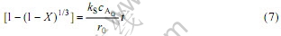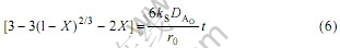 树脂对某些离子具有很高的亲和力,吸附过程为不可逆过程,用收缩核模性来描述这一过程是很有效的。因为树脂对[Fe(CN)6]4-和[Fe(CN)6]3-均有很强的亲和力,所以用收缩核模性来描述这一吸附过程的动力学数据。