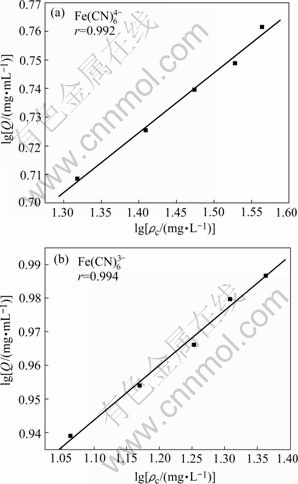 图3  [Fe(CN)6]4-和[Fe(CN)6]3-的Freundlich 等温吸附线