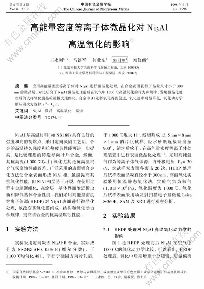 关键词:Ni3Al 微晶 高温氧化 腐蚀