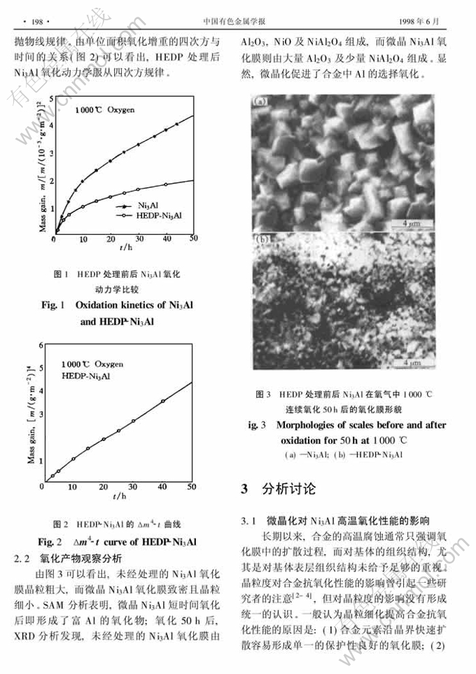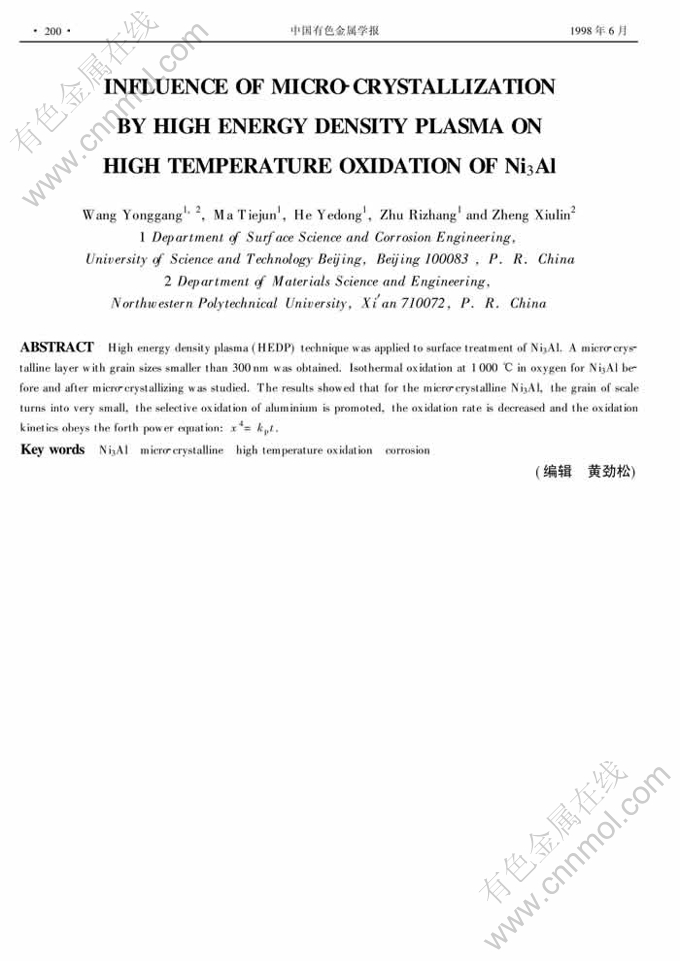 Key words:Ni3Al micro-crystalline , high temperature oxidation , corrosion