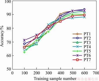 The data-driven method requires a large amount of simulation experiment data for model training, and the accuracy is greatly affected by the amount of training data. The less training data the model needs to achieve the desired accuracy, the less difficult the model is to apply to actual engineering. The change of accuracy with the amount of training data can measure the difficulty of model engineering application. The accuracy changes with the number of training samples is shown in Figure10. When the number of training data is around 100, the accuracy of each valve is less than 75%. The less training data limits the accuracy. As the amount of training data increases, the accuracy of the model increases rapidly. When the number of training samples reaches about 300, the location accuracy of each valve reaches 80%. When the number of training samples exceeds 450, the model accuracy increases to 90% and then increases slowly. The model can be used for engineering applications after training with 300 sets of data, the accuracy can reach 90% through self-learning.