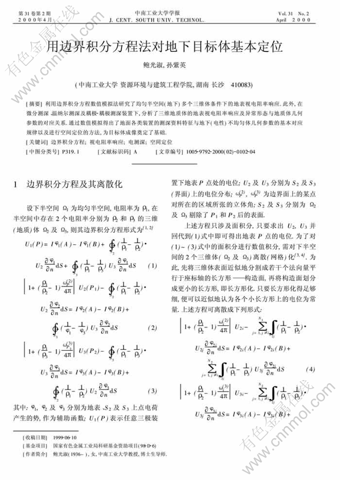 关键词:边界积分方程;视电阻率响应;电测深;空间定位