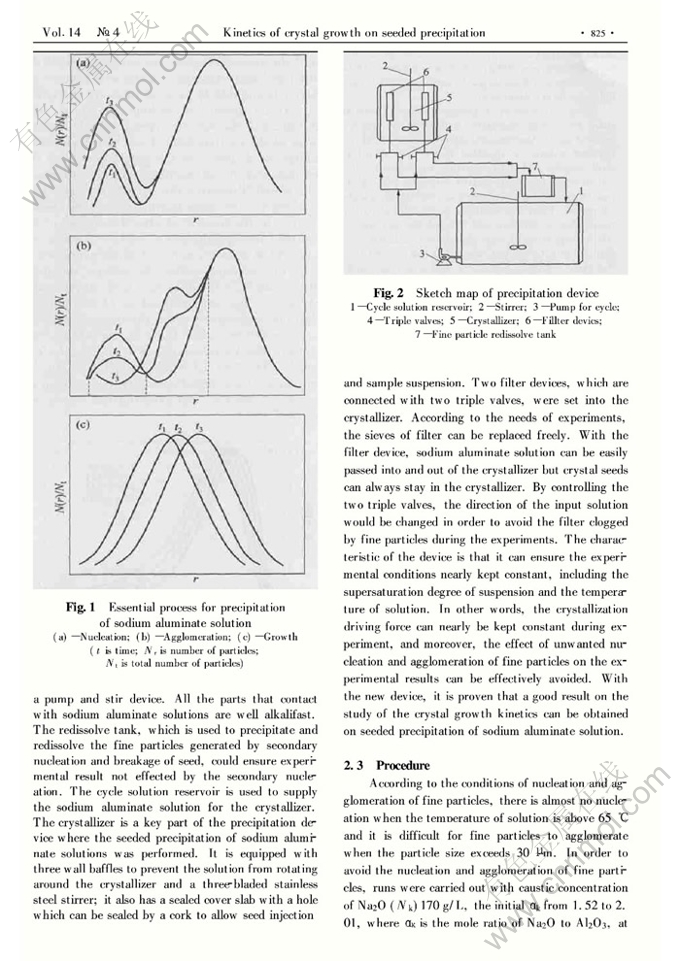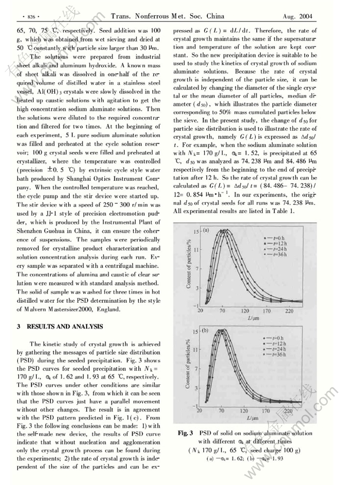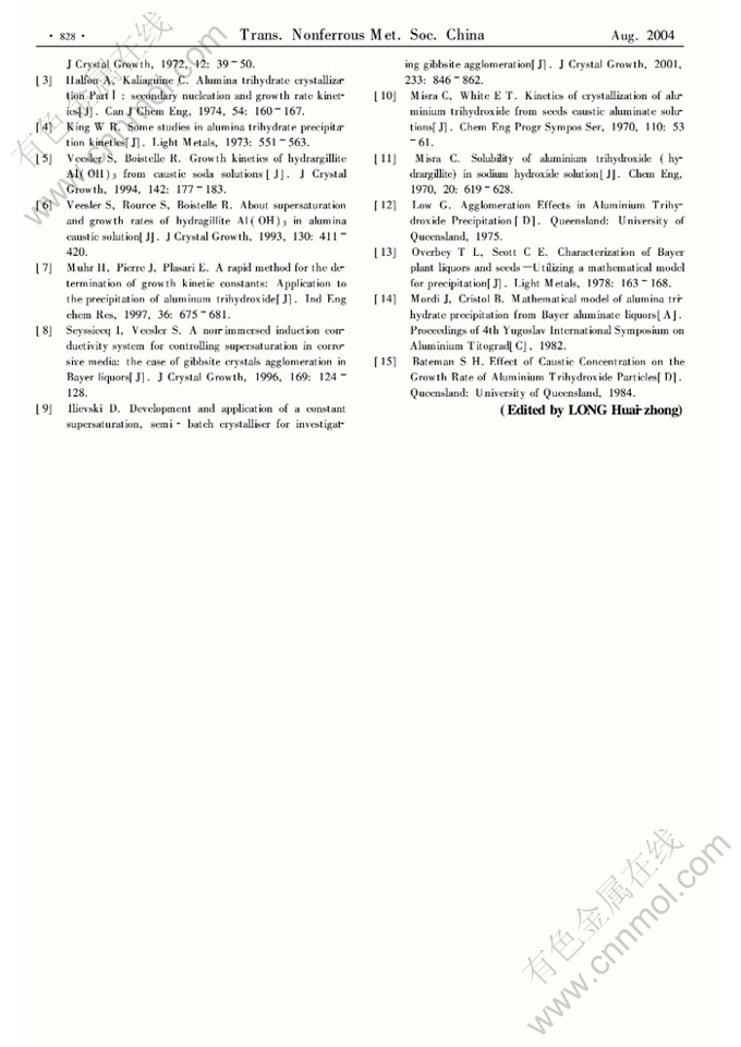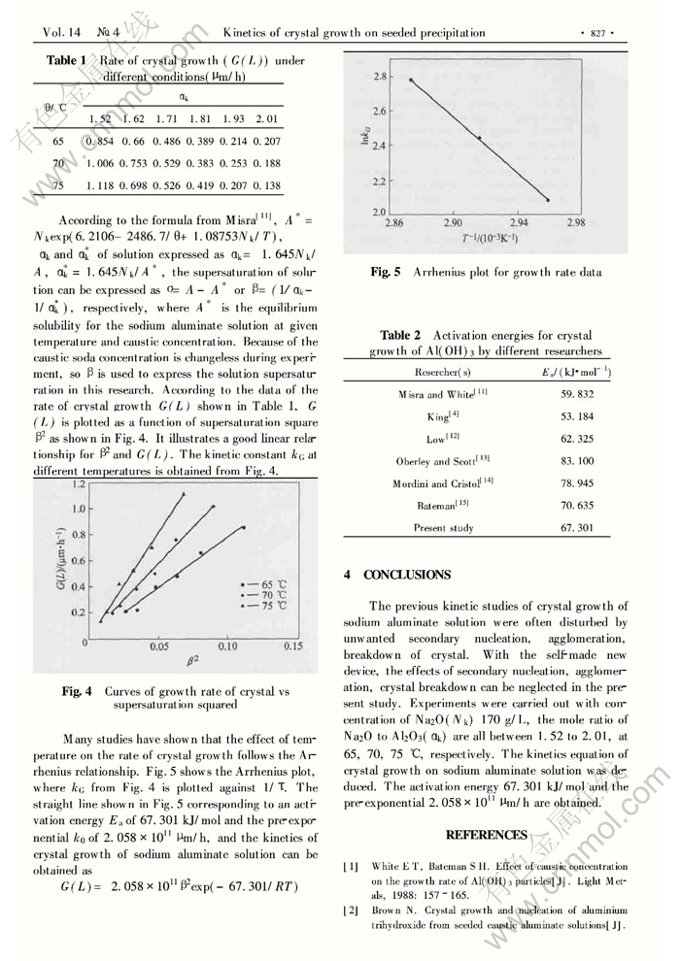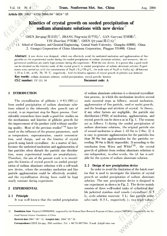 Key words:sodium aluminate solution; seeded precipitation; crystal growth; kinetics