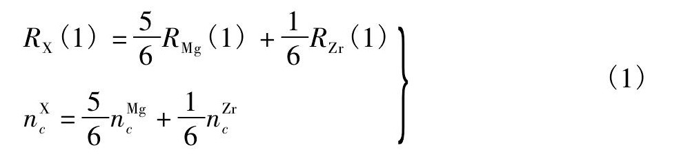 同理,利用式( 1) ,( 2) 可计算Mg-Zr晶胞的价电子结构参数统计值n'A,其结果列于表3。