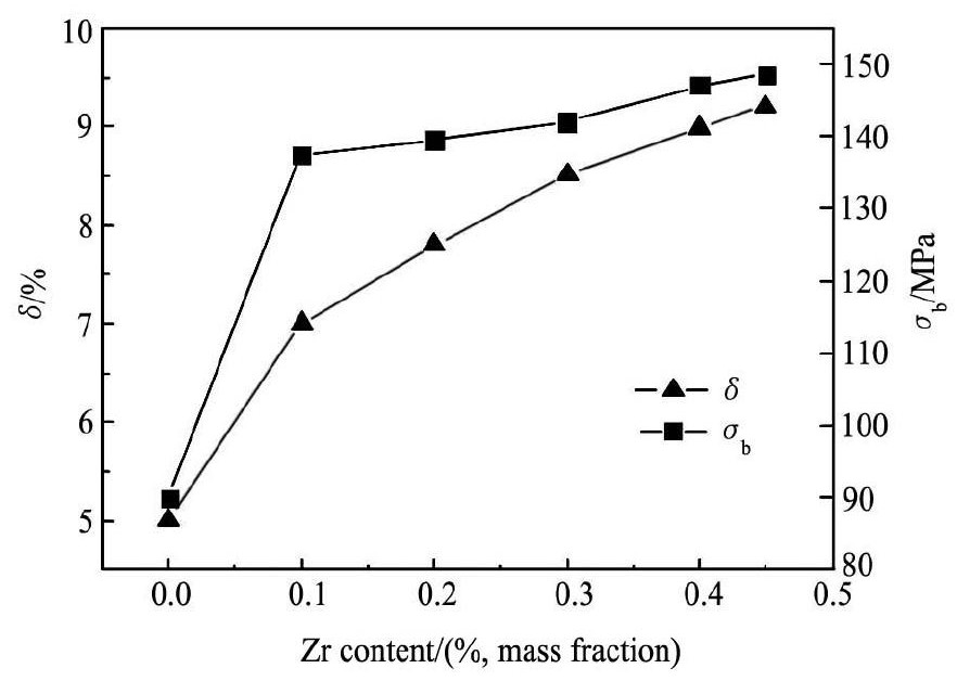 图3 Zr含量对Mg-Zr合金力学性能的影响Fig. 3 Effect of Zr content on properties of Mg-Zr alloy