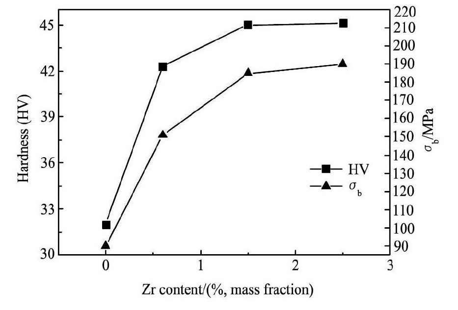图4 Zr含量对Mg-Zr合金强度和硬度的影响Fig. 4Effect of Zr content on strength and hardness of Mg- Zr alloy