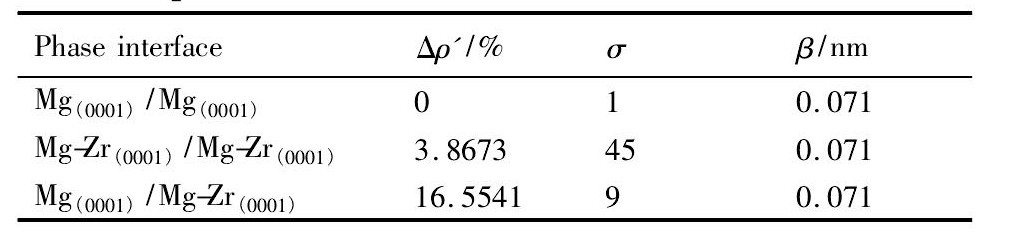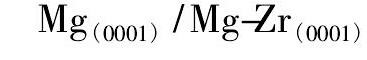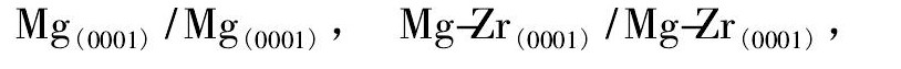由于Zr的溶入使得Mg-Zr合金固溶体中存在着3种界面形式,即Mg晶胞内的同相界面Mg( 0001)/ Mg( 0001),Mg-Zr晶胞内的同相界面Mg- Zr( 0001)/ Mg-Zr( 0001),Mg与Mg-Zr晶胞间的异相界面Mg( 0001)/ Mg-Zr( 0001)。