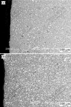 Fig.2 shows the microstructures of Cu/(10NiO- NiFe2O4) cermets with Cu content of 10% and 20%(mass fraction). From Fig.2, it can be seen that the metallic phase Cu is distributed evenly in 10NiO-NiFe2O4 ceramic matrix. However, there are conglomerations for the cermet with 20%Cu, and the grain diameter of metallic phase Cu is larger than that with 10%Cu.