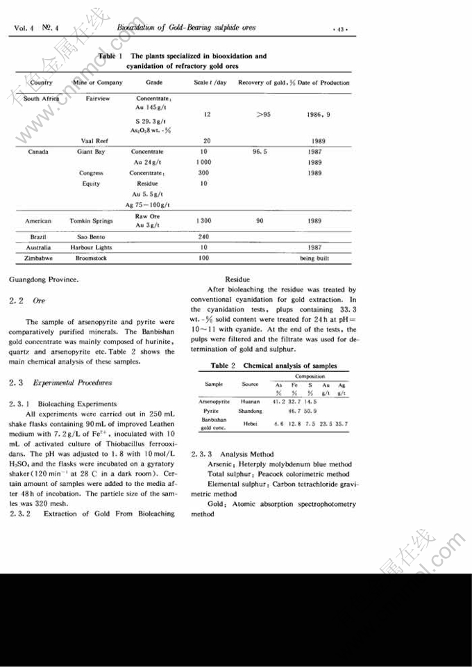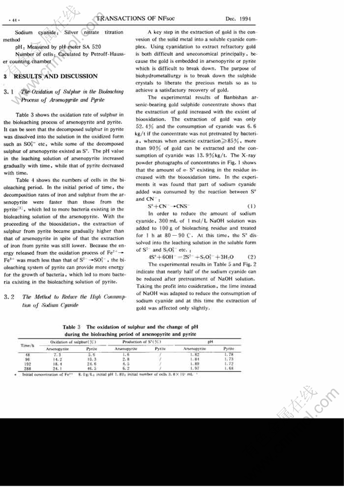 Key words:removing of arsenic by bacteria ;sulphur ;cyanidation of gold