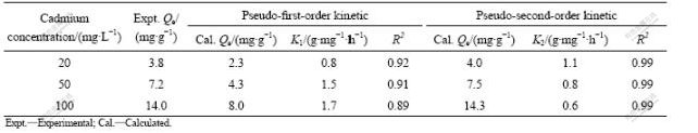 Table 1 Biosorption rate constants and Qe values from pseudo-?rst-order and pseudo-second-order kinetics for biosorption of cadmium on biosorbent