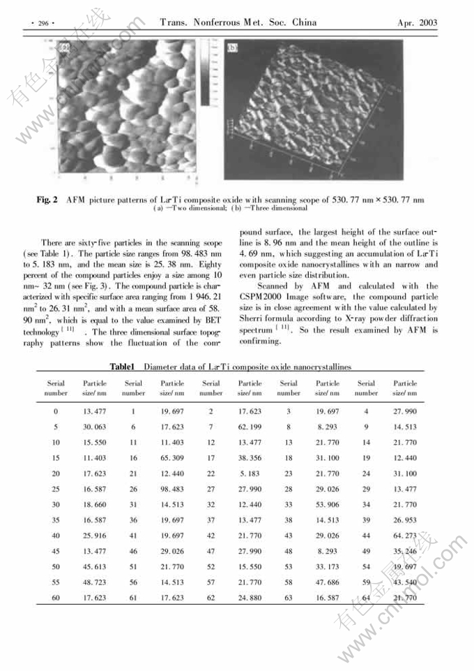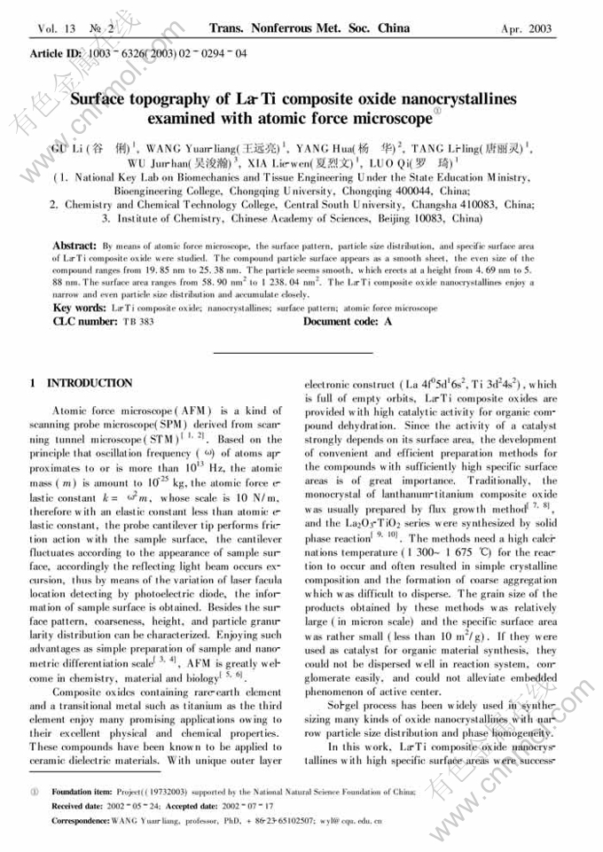 Key words:La-Ti composite oxide; nanocrystallines; surface pattern; atomic force microscope