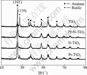 2.1 Pr、N单掺杂及共掺杂对光催化剂样品晶型的 影响