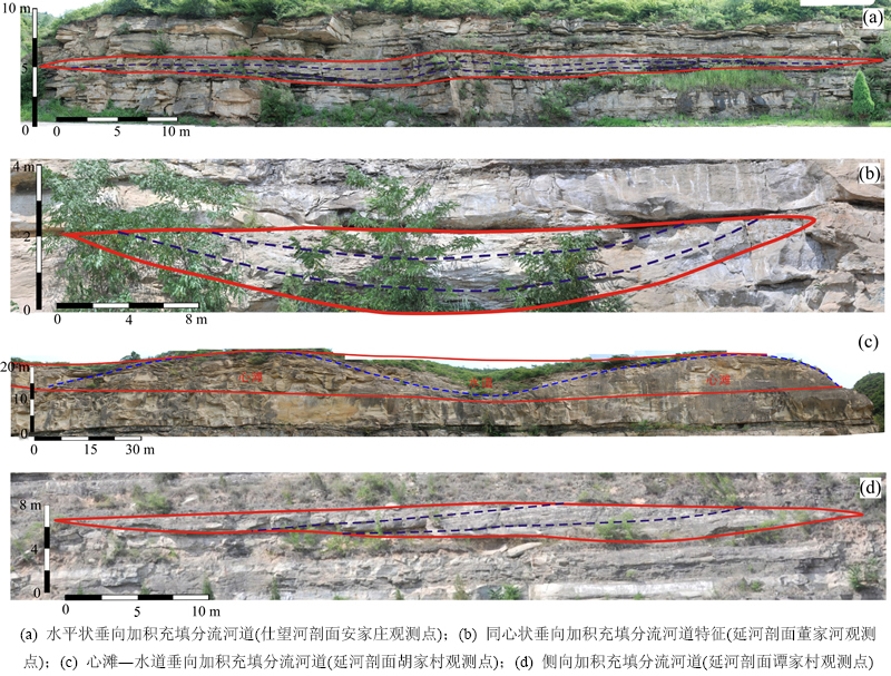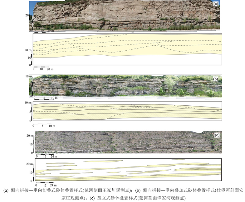 Fig. 6 Characteristics of different stacking patterns of distributary channel in outcrop sections