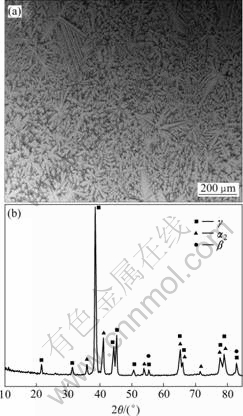 Fig.1 Microstructure(a) and XRD pattern(b) of as-cast Ti-47Al- 4Nb-0.6W alloy