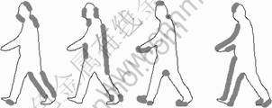 对于轮廓不同的物体,这4类边缘的分布也互不相同。以行人为例,头顶部以及脚步区域的边缘基本属于水平方向;竖直类型的边缘主要分布在身体两侧;对角线方向的边缘分布在手部以及腿部的位置。图6所示为针对相同人体轮廓图像统计的边缘点类型分布图,从左到右依次对应图5(a)~(d)。